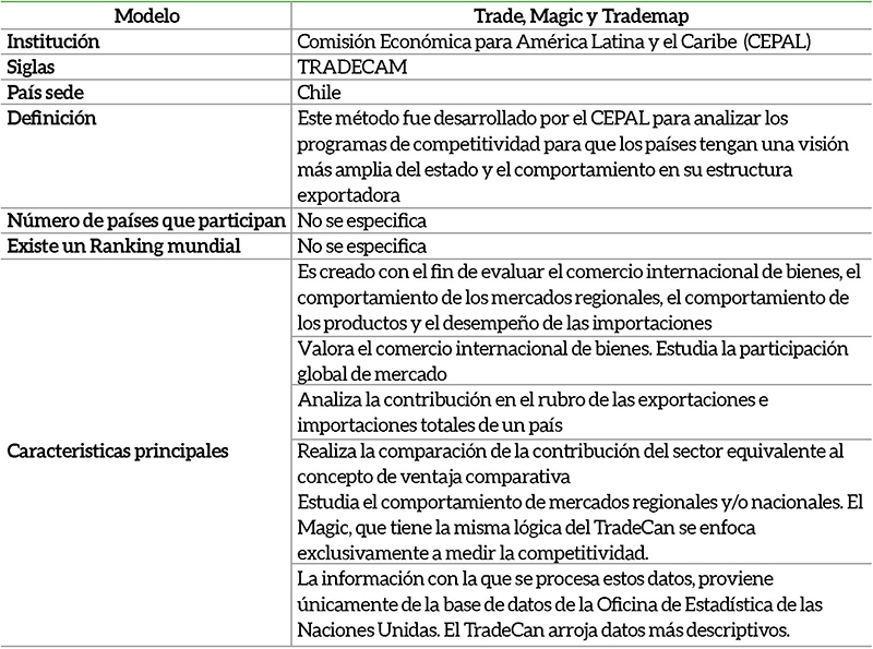 Tabla 3. Modelo TradeCan, Magic y TradeMap