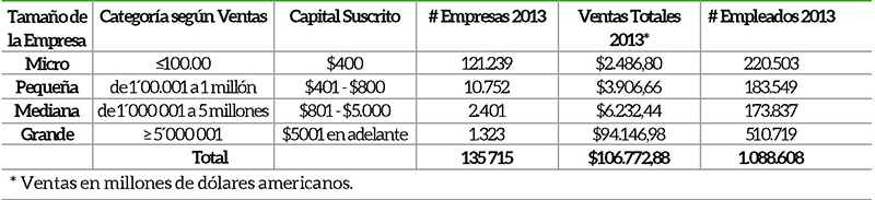 Tabla 8. Empresa en el DMQ al 2013, por capital suscrito y número de empleados