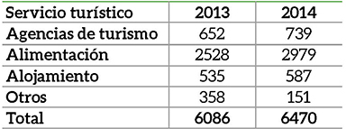 El sector turismo pertenece a la industria de servi- cios y es clave para generar bienestar a sus habitan- tes; con los ingresos que deja, países desarrollados han logrado cubrir las necesidades de sus ciudada- nos. (Lascano, 2016). Uno de los objetivos del gobier- no ecuatoriano en el Plan Nacional del Buen Vivir 2013-2017, se enfoca en el incremento al 64% de los ingresos por turismo sobre exportaciones de ser- vicios. En la tabla 9 se detalla el total de empresas en el DMQ que se dedican a actividades de turismo. El Ecuador enfatiza la promoción internacional de servicios que oferta, focalizando a los secto- res priorizados del turismo, transporte y logística; además el gobierno nacional busca la poten- cialización del turismo a través de la dotación de infraestructura y la generación de capaci- dades de talento humano. (Lascano, 2016). Este sector, en el año 2014 aportó al PIB nacional con USD. 1.487,2 millones de dólares comparado con el consumo turístico emisor con el PIB de USD. 1.020,5 millones, con un crecimiento del 18,9%. En el mismo año, el sector generó 405.819 plazas de empleo. En el DMQ existe un total de 1.765 empresas dedicas al turismo, de las cua- les, 62 corresponden a empresas grandes, 217 a empresas medianas, 655 a empresas pequeñas y 831 a microempresas. (Lascano, 2016).