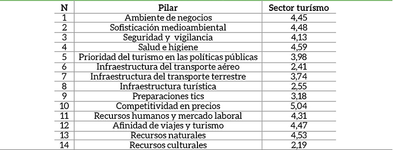 Tabla 12. Nivel de Competitividad de los pilares en el sector Turismo