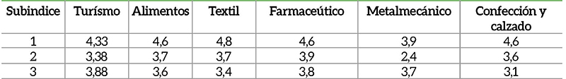 El valor del índice de competitividad del sector turismo se obtiene promediando los tres subíndices.