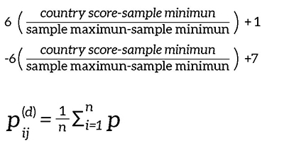 Para obtener el Índice de Competitividad WEF para el sector turismo, el cálculo se lo realiza de manera diferente y los datos que no se encuentran en la escala del 1-7 se los normaliza mediante el uso de las siguientes fórmulas según corresponda: