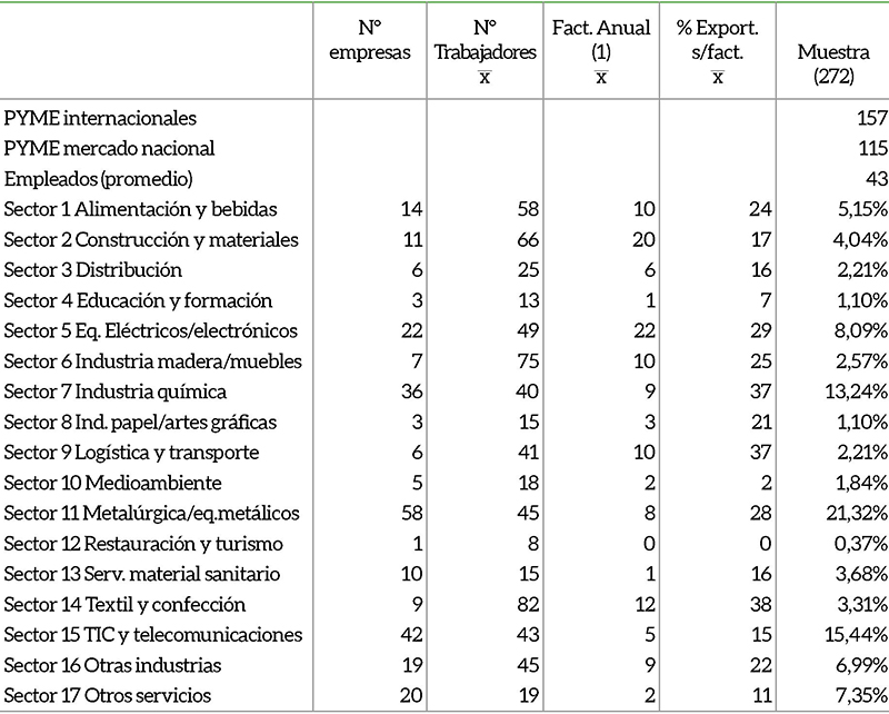 Los datos fueron recogidos por la Agencia para la competitividad de la empresa (ACCIÓ), organismo público dependiente de la Generalitat de Catalunya, son de corte transversal (cross-section), entre 2009 y 2012 y corresponden a 272 PYMEs catalanas de 17 sectores económicos cuyos perfiles se muestran en la Tabla 1.