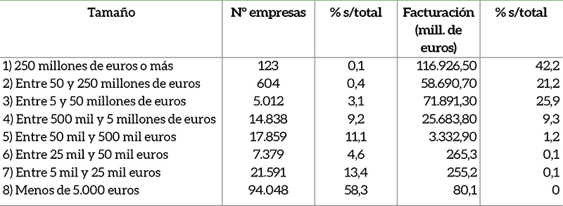 Tabla 3. Exportaciones en España durante 2017 por tramos de facturación