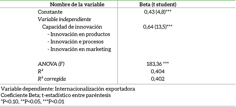 Palabras clave: innovación; internacionalización; PYMEs; análisis de regresión lineal.