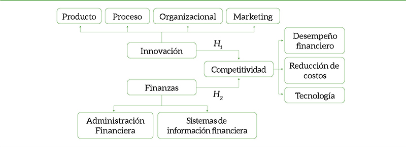 De acuerdo al análisis de la literatura, la innovación y los aspectos financieros influyen de manera relevante en la competitividad de las Pymes manufactureras, siendo aspectos determinantes en la estrategia empresarial, puesto que el éxito de éstas, por una parte se asocia al desarrollo de nuevos productos, servicios o procesos que permitan responder a las necesidades de los clientes, adaptarse a los cambios en el entorno o mejorar las oportunidades para alcanzar los objetivos de la empresa (Castillo, 2010; Secretaría de Economía, 2007; Rubio y Aragón, 2006; Camisón et al., 2004; Lloyd et al., 2002). Por lo anterior, se plantea la siguiente hipótesis: