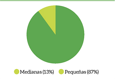 Fuente: Elaboración propia. Medianas (13%) Pequeñas (87%)