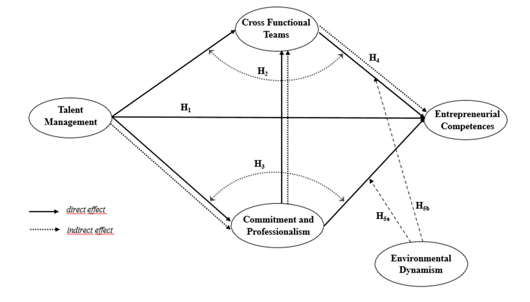 Accordingly, this research aims to (1) analyse how TM influences the development of entrepreneurial competences, recognising human capital as a key asset; (2) examine the mediating role of CFTs, organisational commitment, and professionalism in reinforcing these competences; and (3) assess how environmental dynamism (ED) moderates these relationships, shaping the entrepreneurial effectiveness of SMEs.